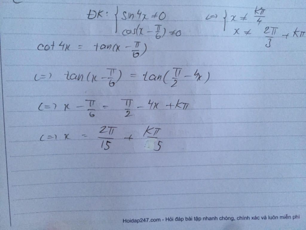 ĐK: $\begin{cases}sin4x \ne 0\\cos x - \dfrac{π}{6} \ne 0\\\end{cases}$