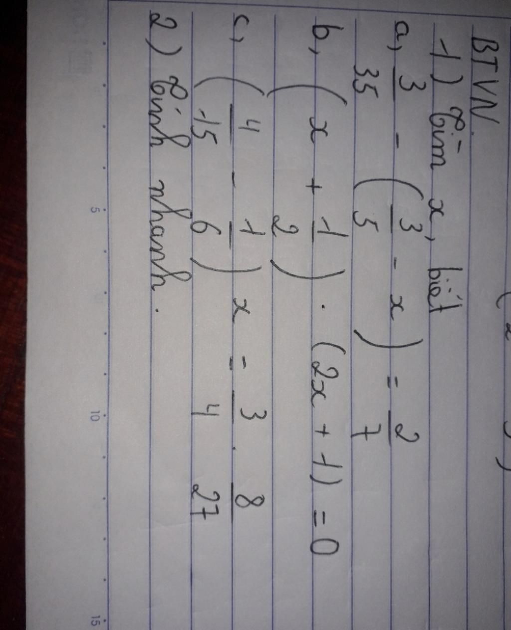 c) (4/15 - 1/6) . x= 3/4 . 8/27