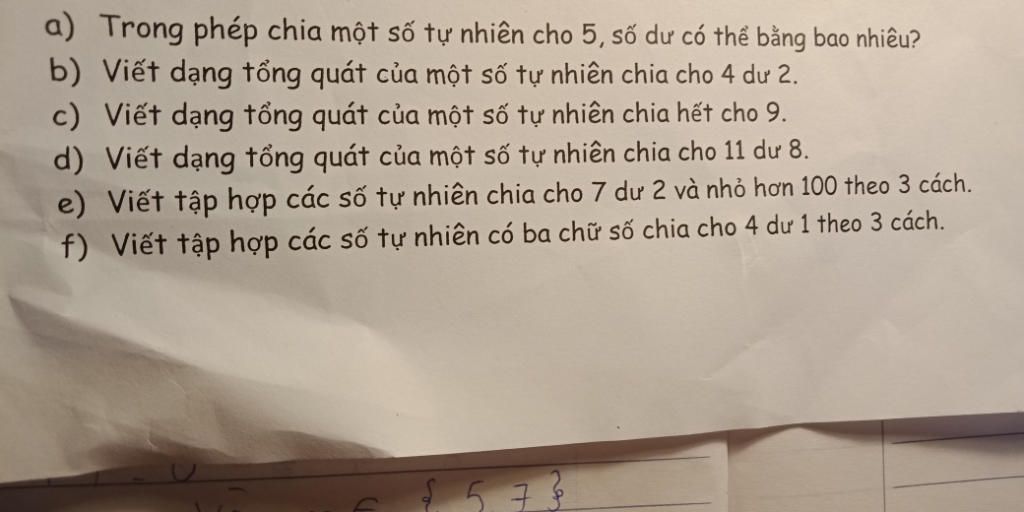 a) Số tự nhiên chia cho `5` có thể dư `0;1;2;3;4`