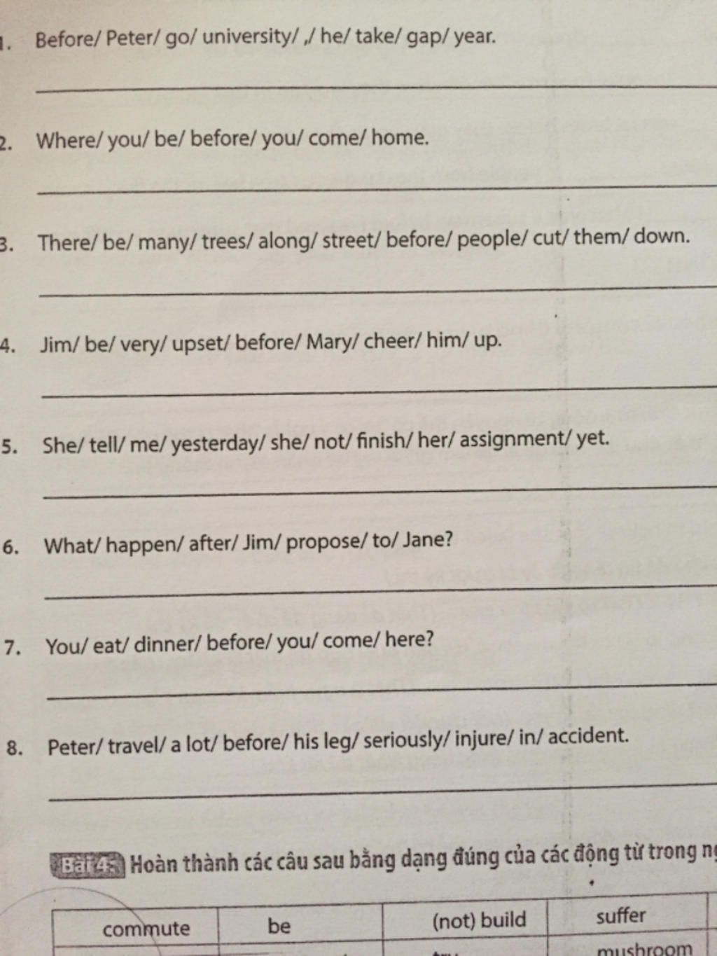 1. Before he went to university, he had taken a gap year. -> before QKĐ, QKHT