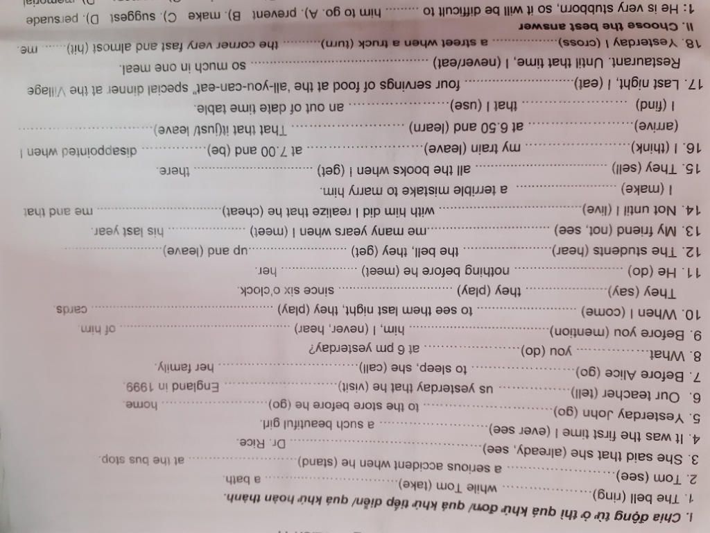 16. thought/ left/ was/ arrived/ learned/ has just left/ found/ used