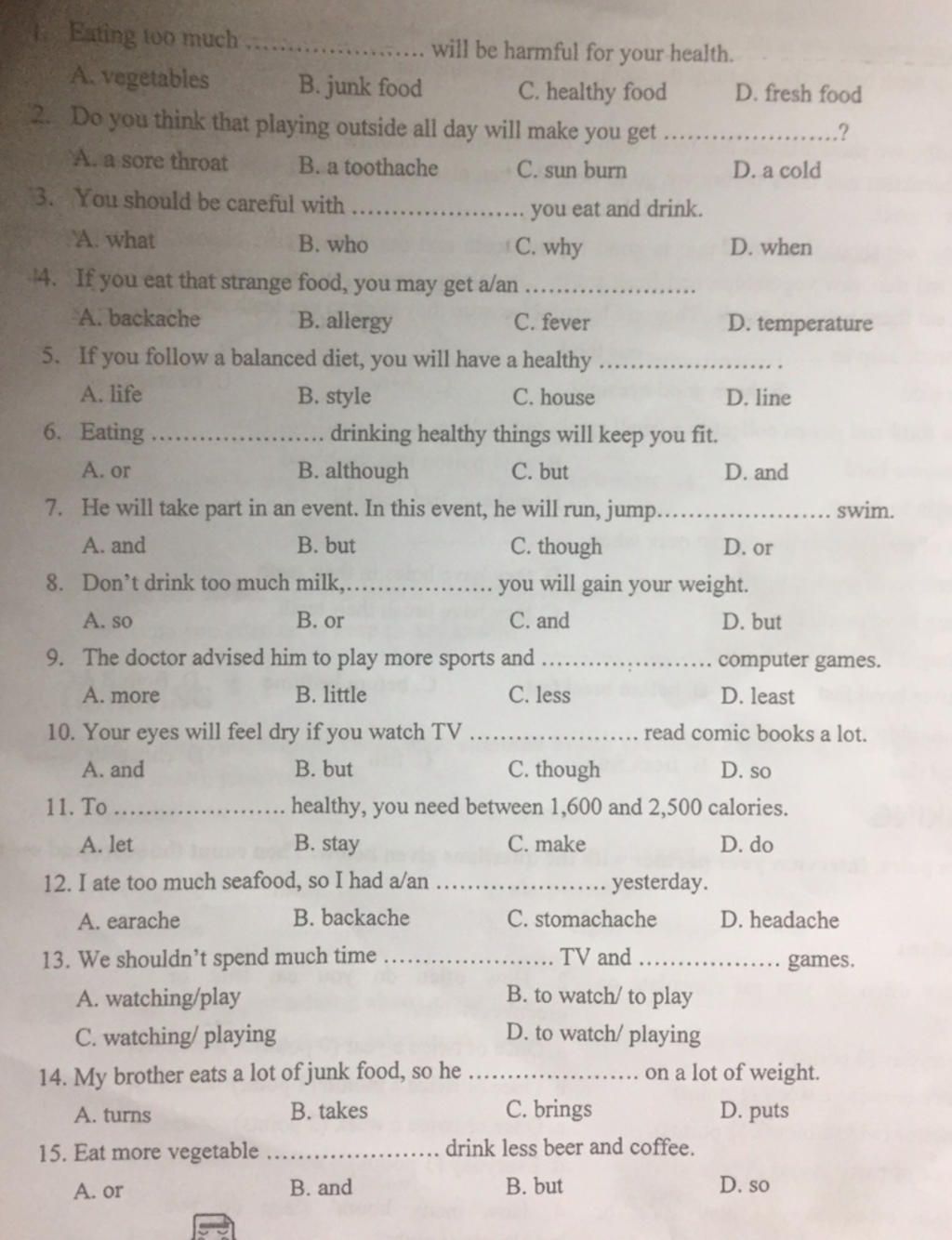 12 phải là stomachache chứ vì tôi ăn quá nhiều đồ hải sản nên tôi đã bị đau bụng vào ngày hq