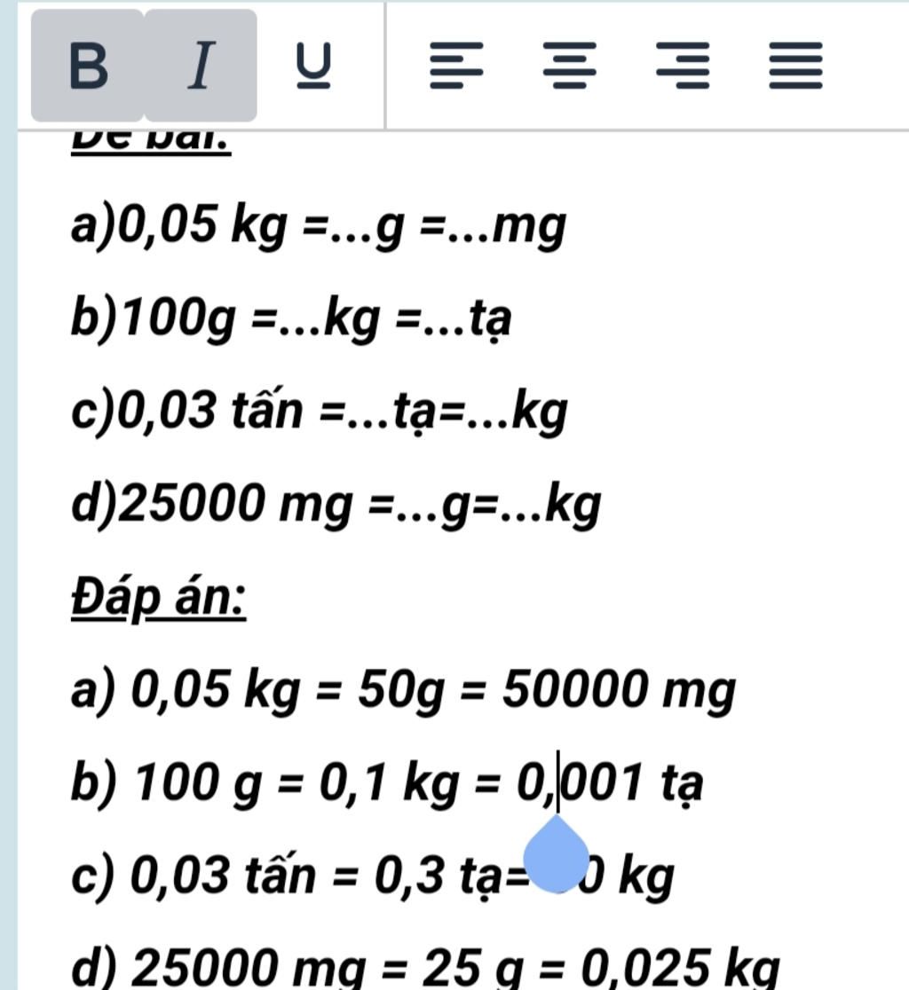 c) 0,03 tấn = 0,3 tạ= 30 kg
