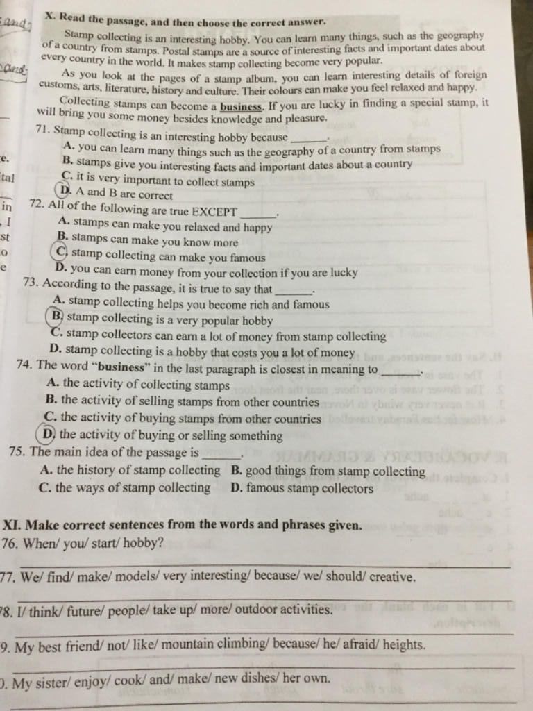 79. My best friend doesn't like mountain climbing because he is afraid of heights.