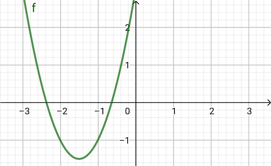 Hàm số là hàm đa thức bậc 2 có $a>0$ nên đồ thị hàm số có dạng parabol quay bề lõm về phía trên tọa độ đỉnh là $ (-\dfrac{3}{2};-\dfrac{3}{2})$ và đi qua $(0;3)$ và $(1;11)$
