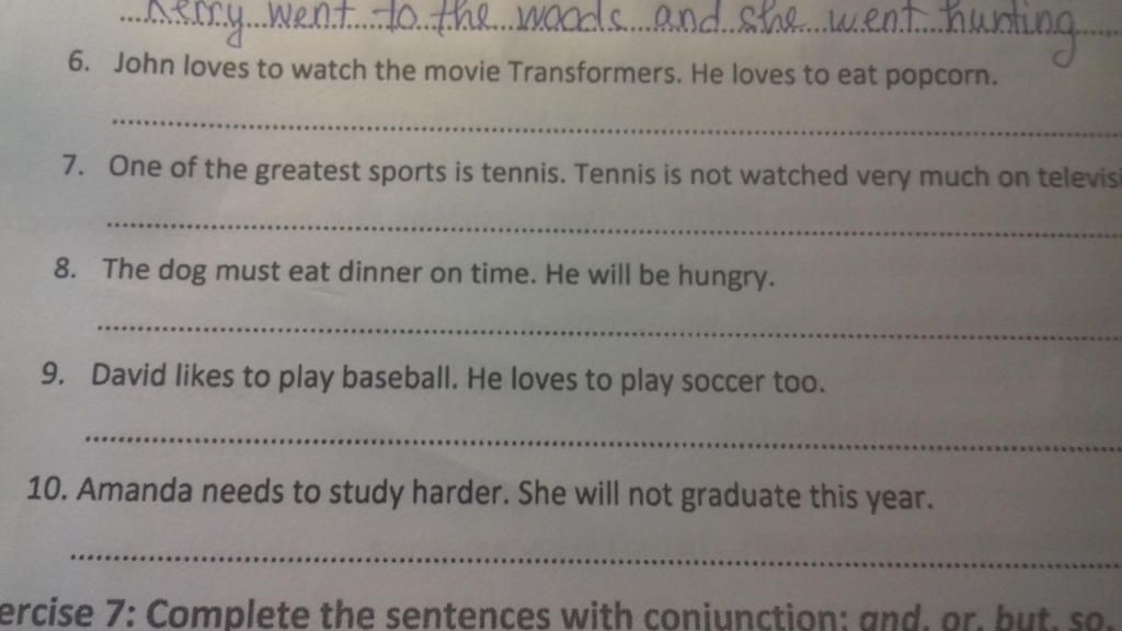 6.John loves to watch the movie and he loves to eat popcorn