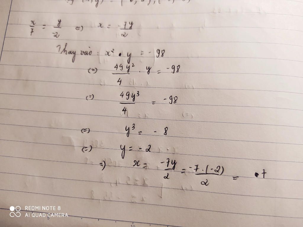`=>x^2 .y=(7k)^2 .(-2k)=49k^2 .(-2k)=-98k^3=-98`