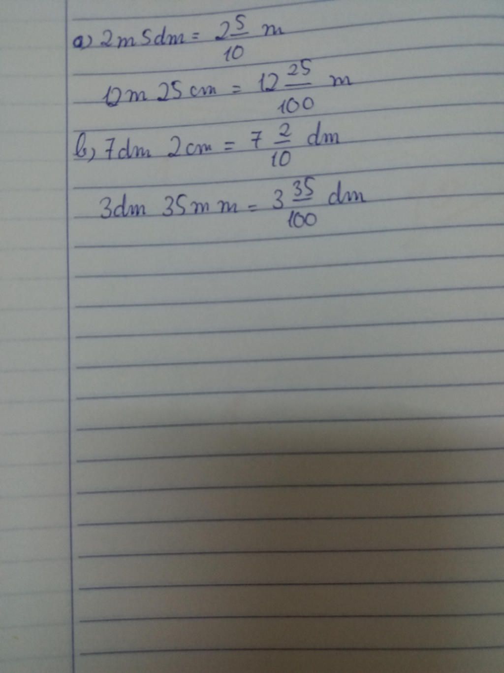 -> đổi 5dm = $\frac{5}{10}$ dm