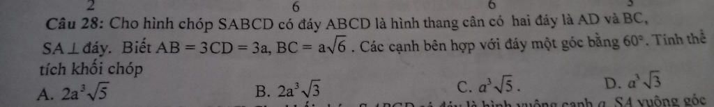 Câu 28: Cho hình chóp SABCD có đáy ABCD là hình thang cân có hai đáy là AD và BC,