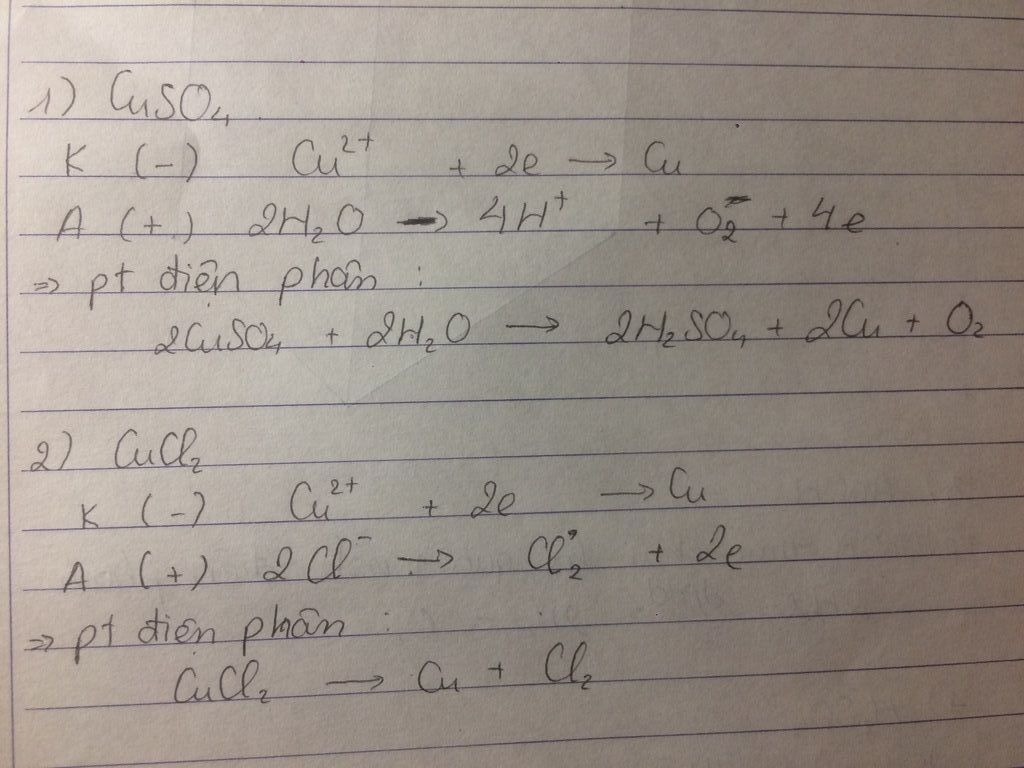 Catot (-) ← CuSO4 (cực dương làm bằng Cu) → Anot (+)