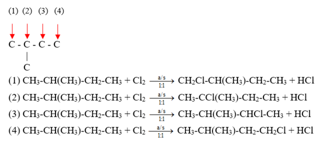 Ứng với 4 vị trí thế ta có 4 sản phẩm monoclo.