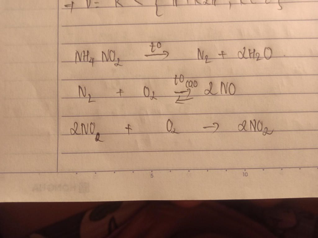 $N_2+O_2⇄2NO$( đk: $t^o$ cao)