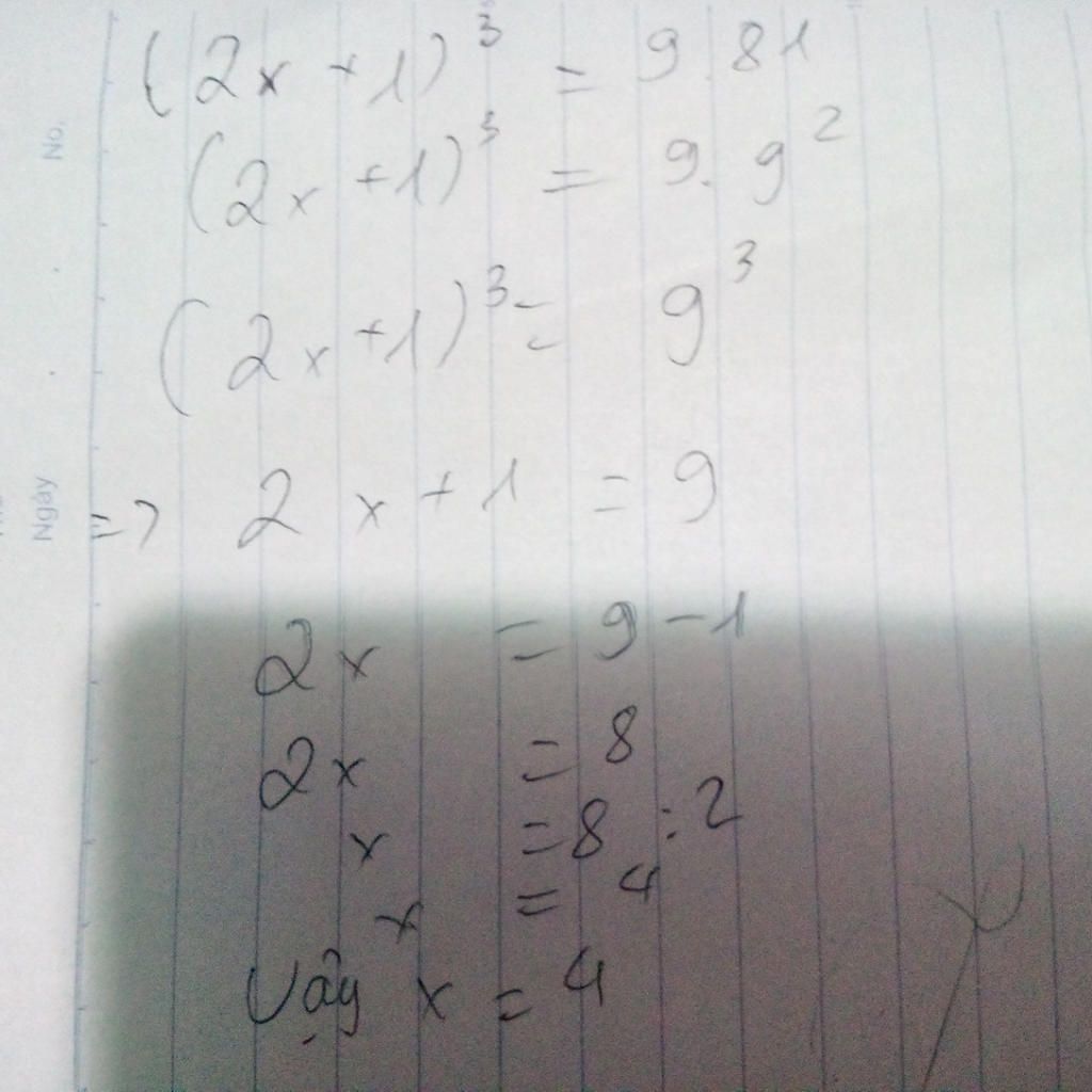 => `(2^x + 1)^3` = `9^1` . `9^2`