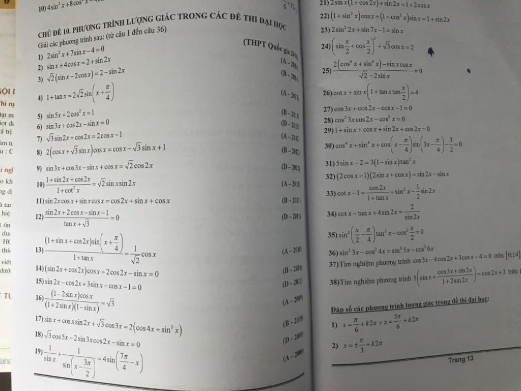 Giải các phương trinh sau: (từ câu 1 đến câu 36)