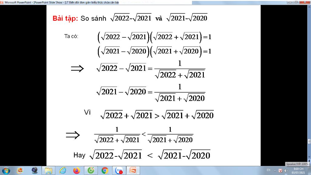 Vậy$\sqrt {2021} - \sqrt {2020} > \sqrt {2022} - \sqrt {2021} $