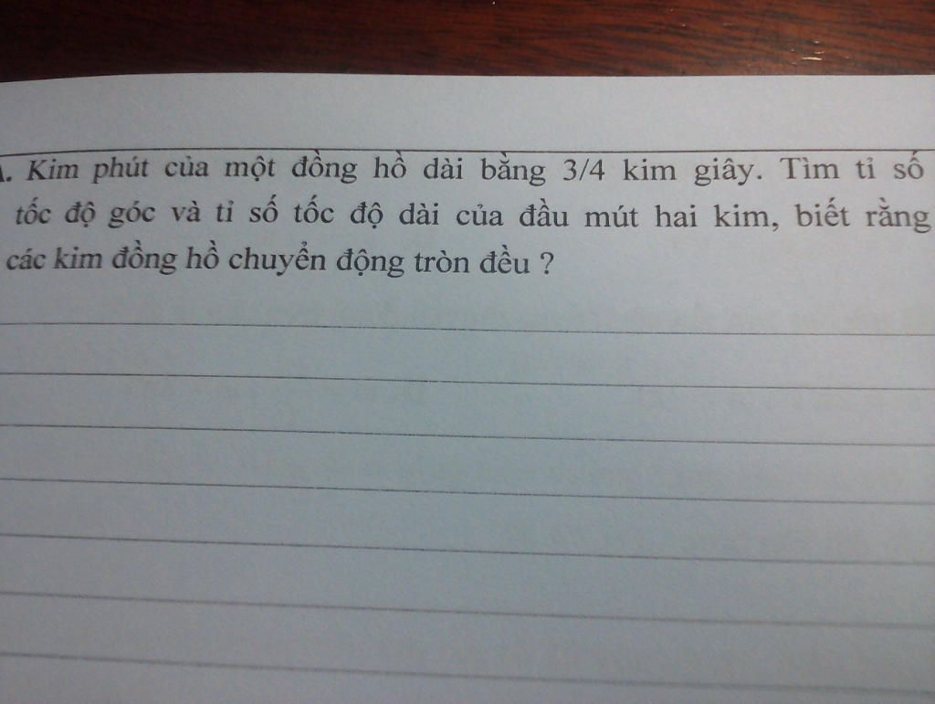 \(\dfrac{{{v_h}}}{{{v_s}}} = \dfrac{{{\omega _h}}}{{{\omega _s}}}.\dfrac{{{R_h}}}{{{R_s}}} = \dfrac{1}{{43200}}.\dfrac{3}{4} = \dfrac{1}{{57600}}\)