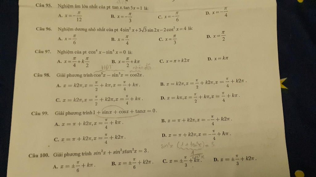 Trong các phương trinh trên, phương trình nào vô nghiệm?