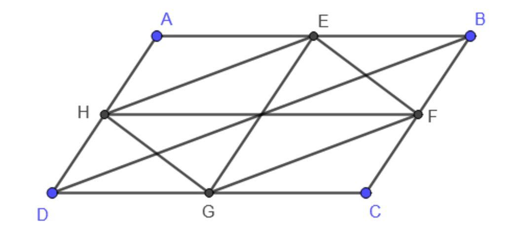 Từ (3); (4); (5) ⇒ AC; BD: EH;FG cắt nhau tại trung điểm của mỗi đoạn (đpcm)