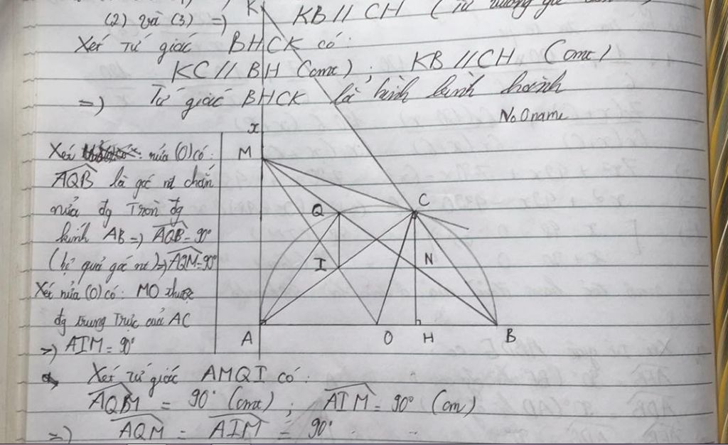 Từ (1) và (2)⇒$\widehat{MIA}=\widehat{MQA}$ cùng nhìn cung MA 1 góc $90^o$