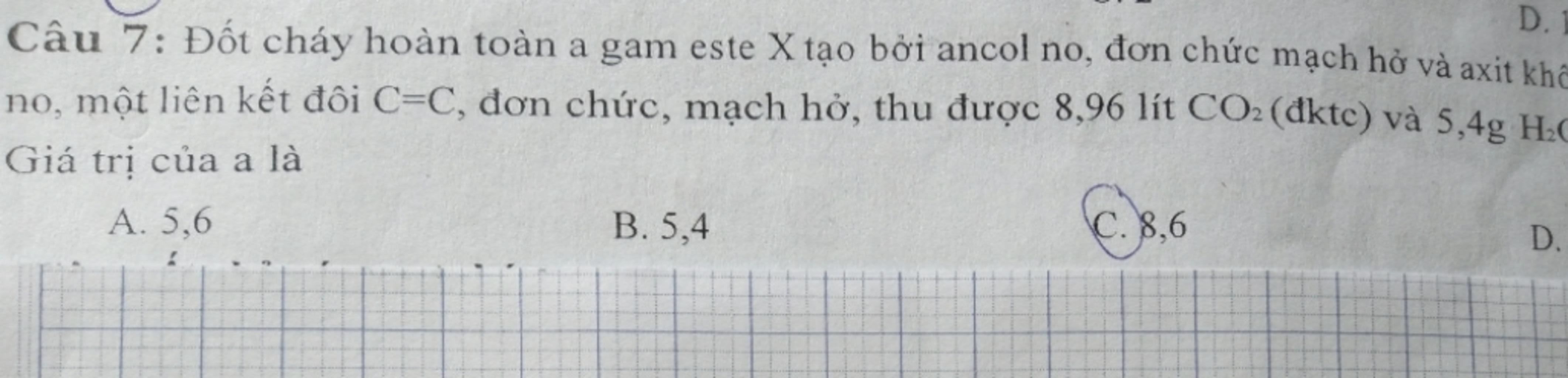 Ta có: 2n este+2nO2=2nCO2+nH20