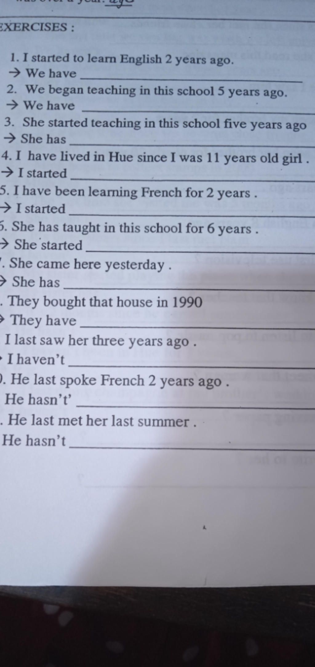 À bạn @Startup ! Theo mình biết thì ở câu 2 từ teach là động từ bất quy tắc nên cột 3 của teach phải là taught! Còn câu5 thì cấu trúc của nó là S+started+ V_ing nên learn phải thêm ing vào nha