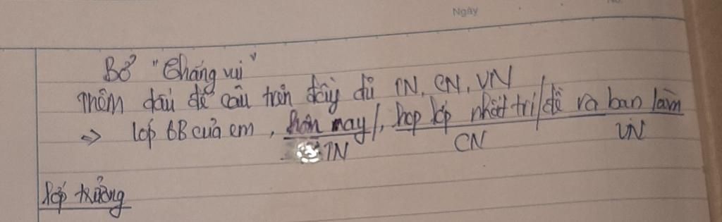 Câu : Lớp 6B của em hôm nay họp lớp nhất trí đề bạn thắng vui làm lớp trưởng.
