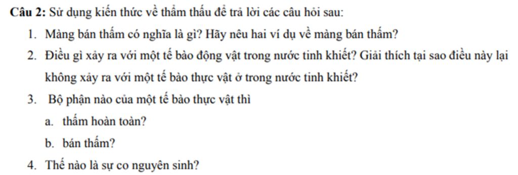 2.4)Co nguyên sinh là một quá trình diễn ra trong tế bào thực vật, trong đó tế bào chất bị co rút lại và tách khỏi thành tế bào thông qua quá trình thẩm thấu.