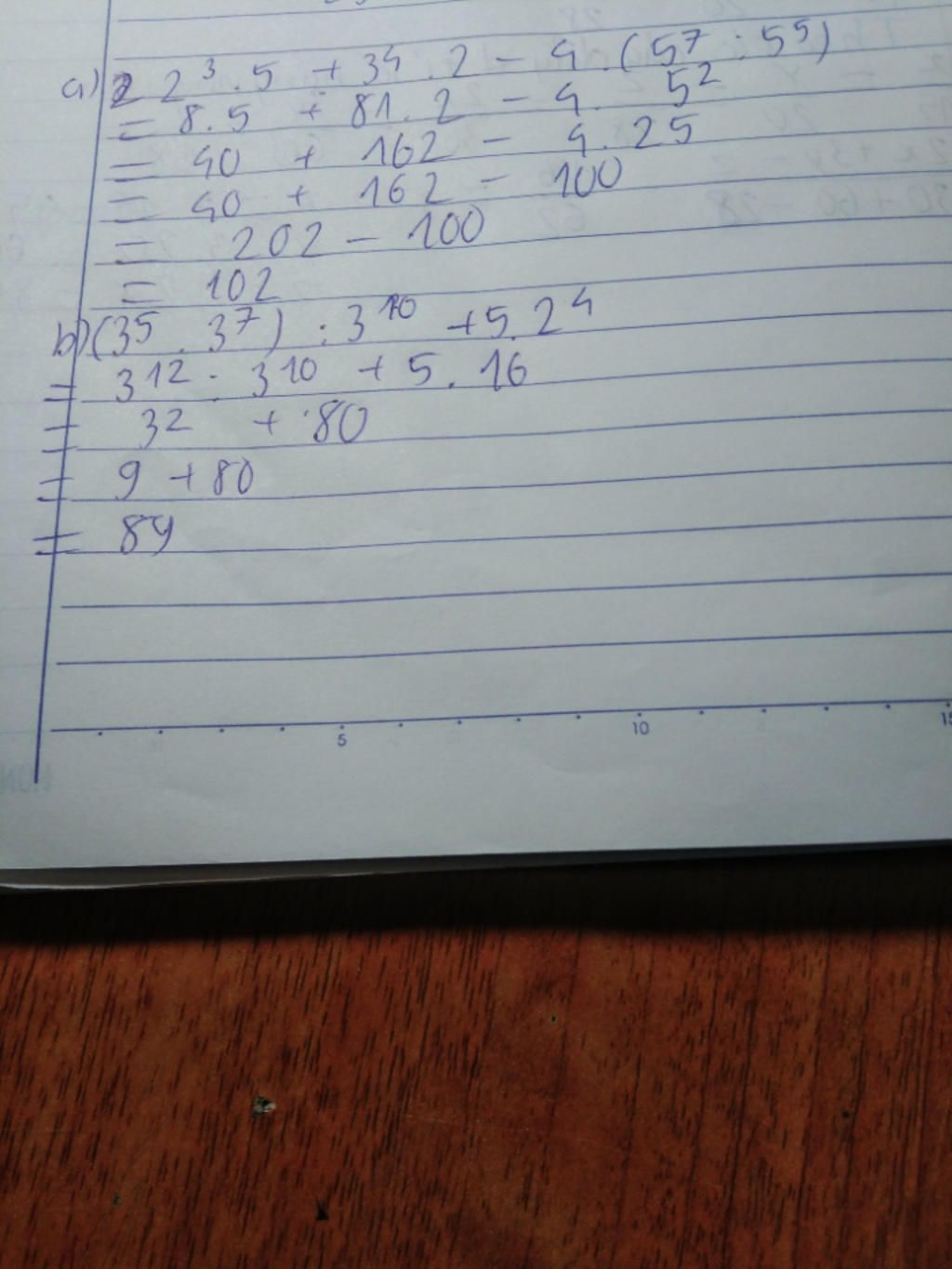 a. 2³ . 5 + 3^4 . 2 - 4 . (5^7 : 5^5)