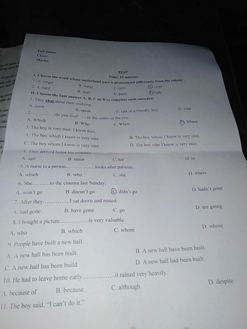 II. Choose the best answer A, B, C or D to complete each ...