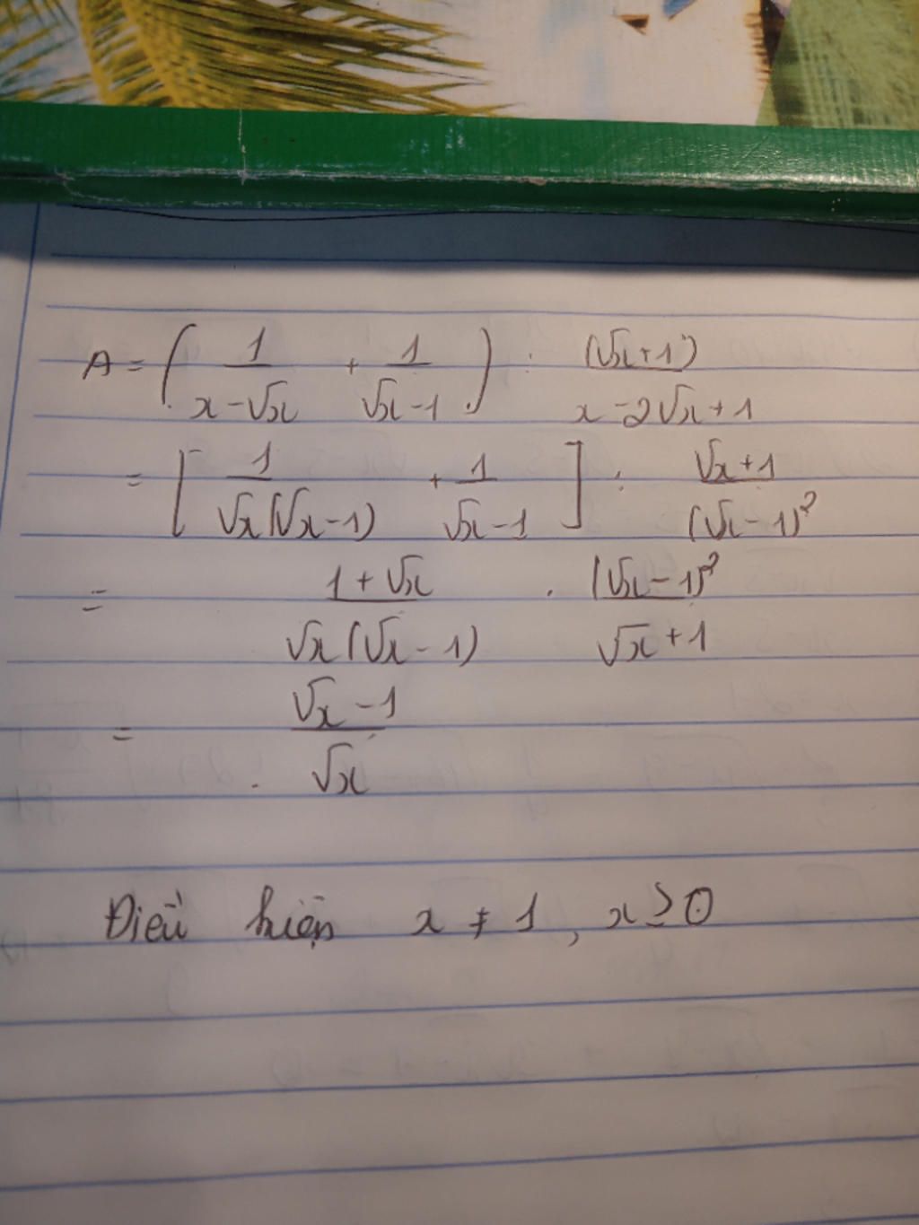 `= (1 + \sqrt{x})/(\sqrt{x}(\sqrt{x} - 1)) . ((\sqrt{x} - 1)^2)/(\sqrt{x} + 1)`