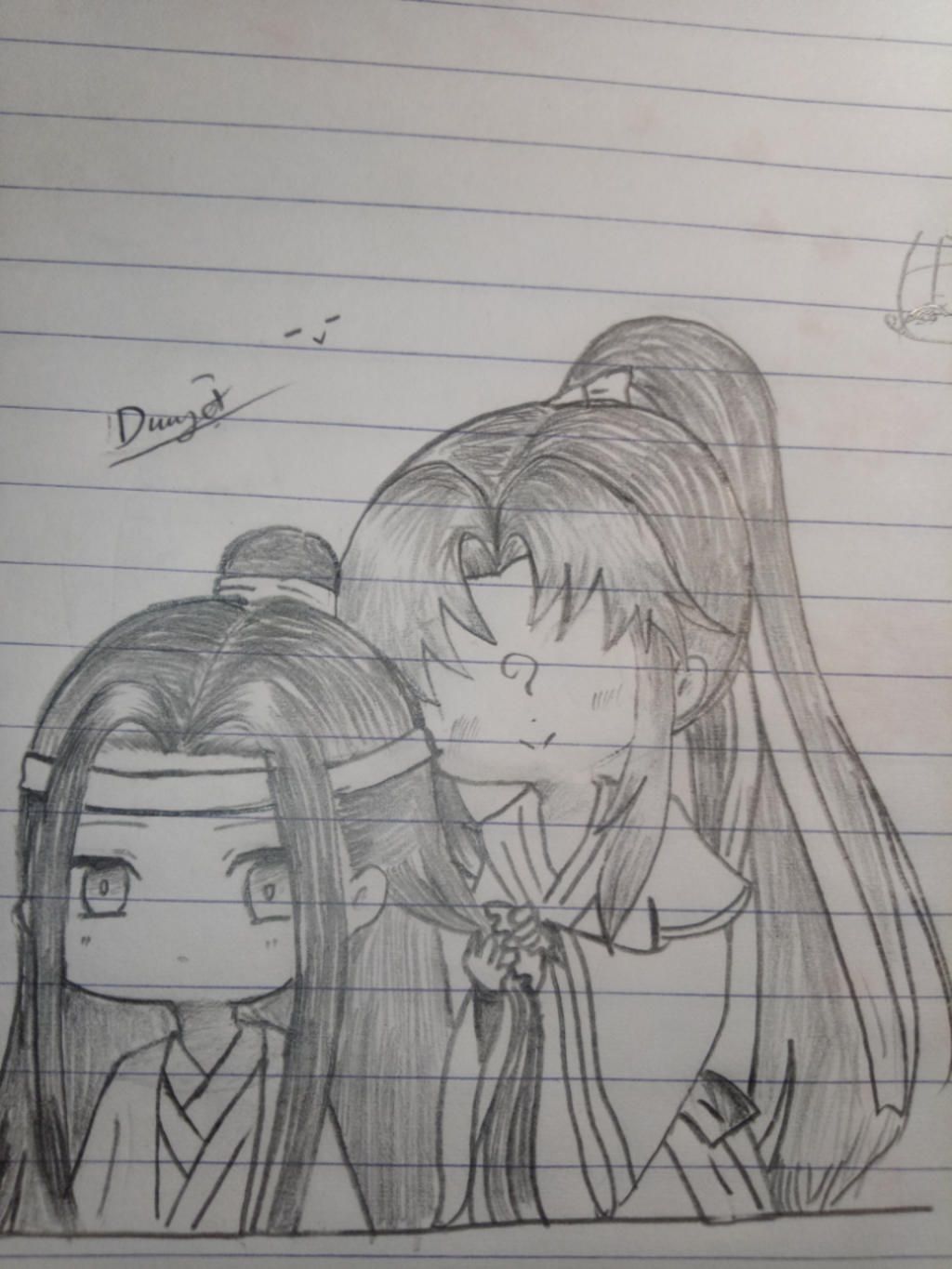 Nhìn người đó chẳng giống nguỵ vô tiện đâu nhưng câu hỏi là vẽ Vương Nhất Bác và Tiêu Chiến mà . Người ở bên trái có cái dây trên trán cho nên mình nghĩ đó là Lam Trạm, 1 người là Lam Trạm thì người còn lại là Nguỵ Vô Tiện.