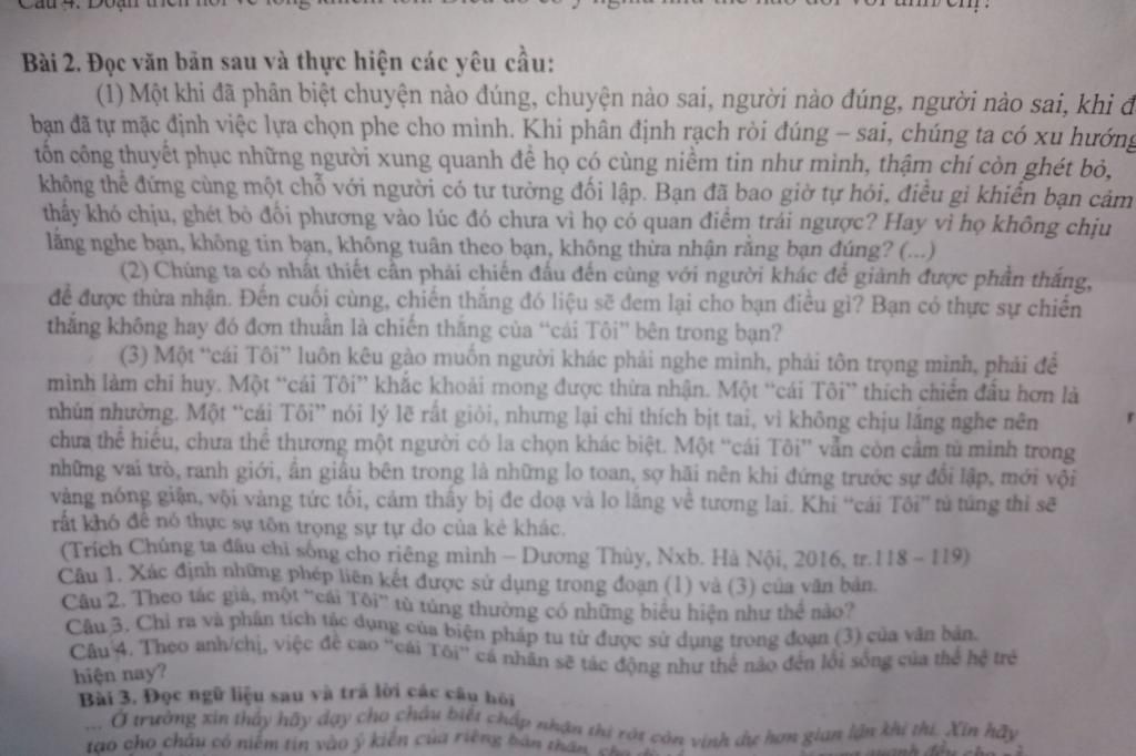 Bài 2. Đọc văn bản sau và thực hiện các yêu cầu: