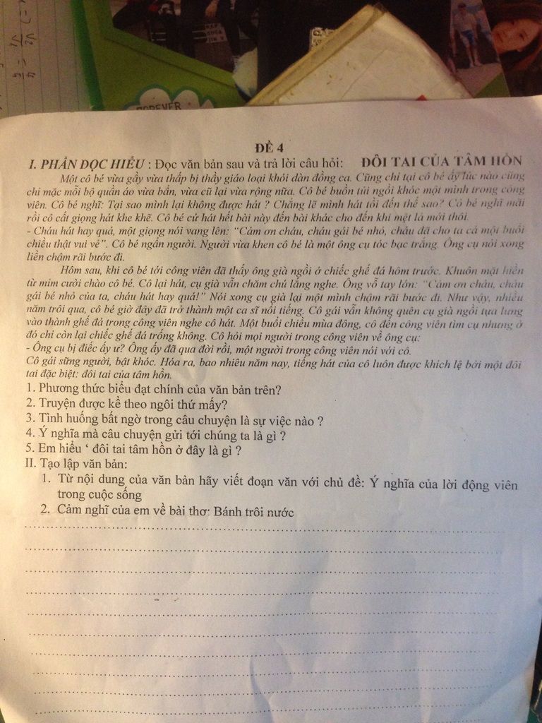 5. Đôi tai của tâm hồn (theo đề) là: đôi tai của người đàn cụ già tuy bị điếc nhưng vẫn khen cô bé