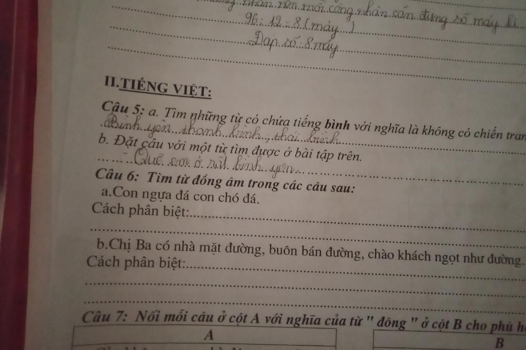Từ đồng âm : " đường", từ "đường" ở từ " Mặt đường" đồng âm với từ "đường" ở từ "Buôn bán đường, ngọt như đường".