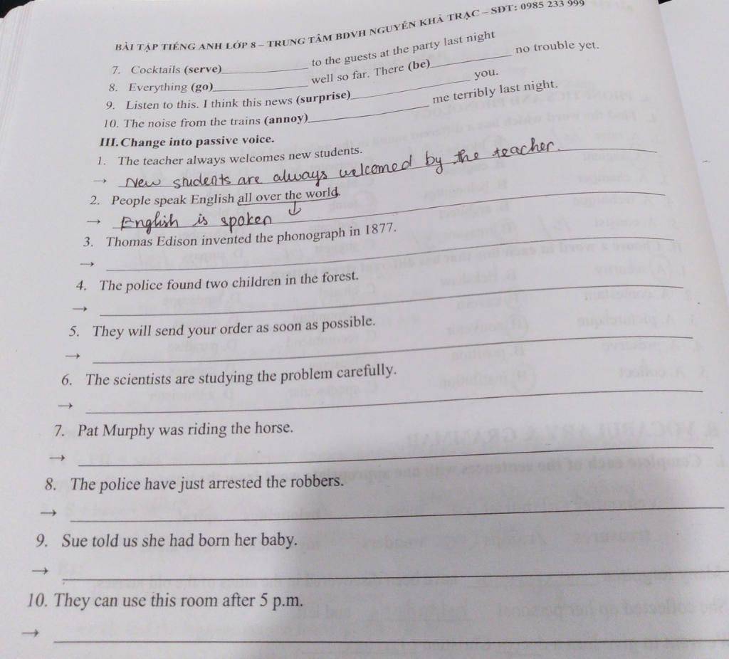 7,were served 8,has been gone / has been 9,will surprise 10,annoyed