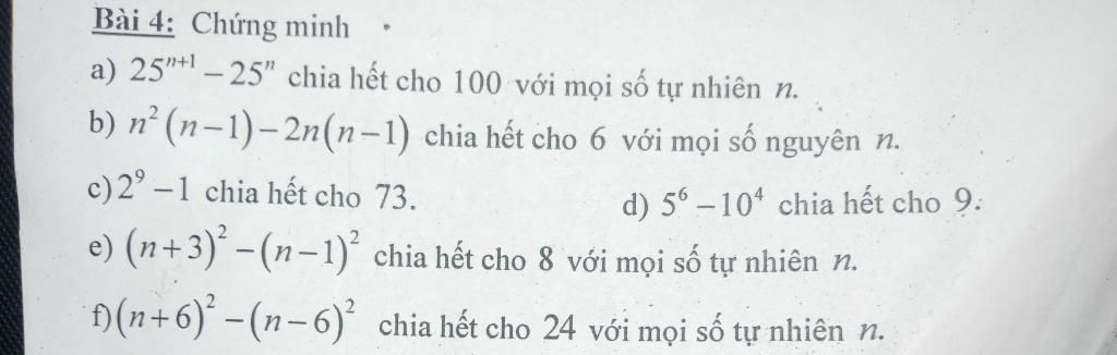 a) 25"* – 25" chia hết cho 100 với mọi số tự nhiên n.