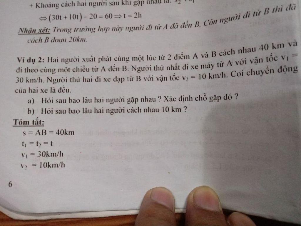 $t = \dfrac{s}{{{v_1} - {v_2}}} = \dfrac{{40}}{{30 - 10}} = \dfrac{{40}}{{20}} = 2h$