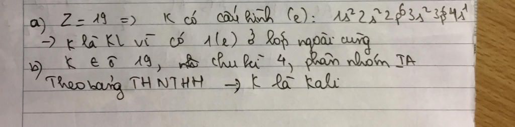 $\Rightarrow$ K là nguyên tố kim loại