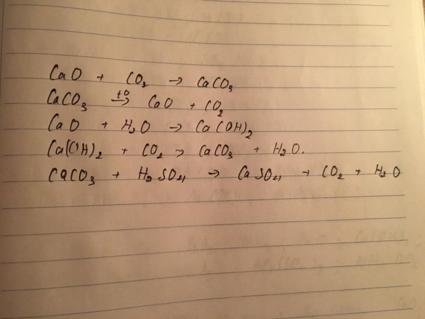 $CaO + CO_2 → CaCO_3$