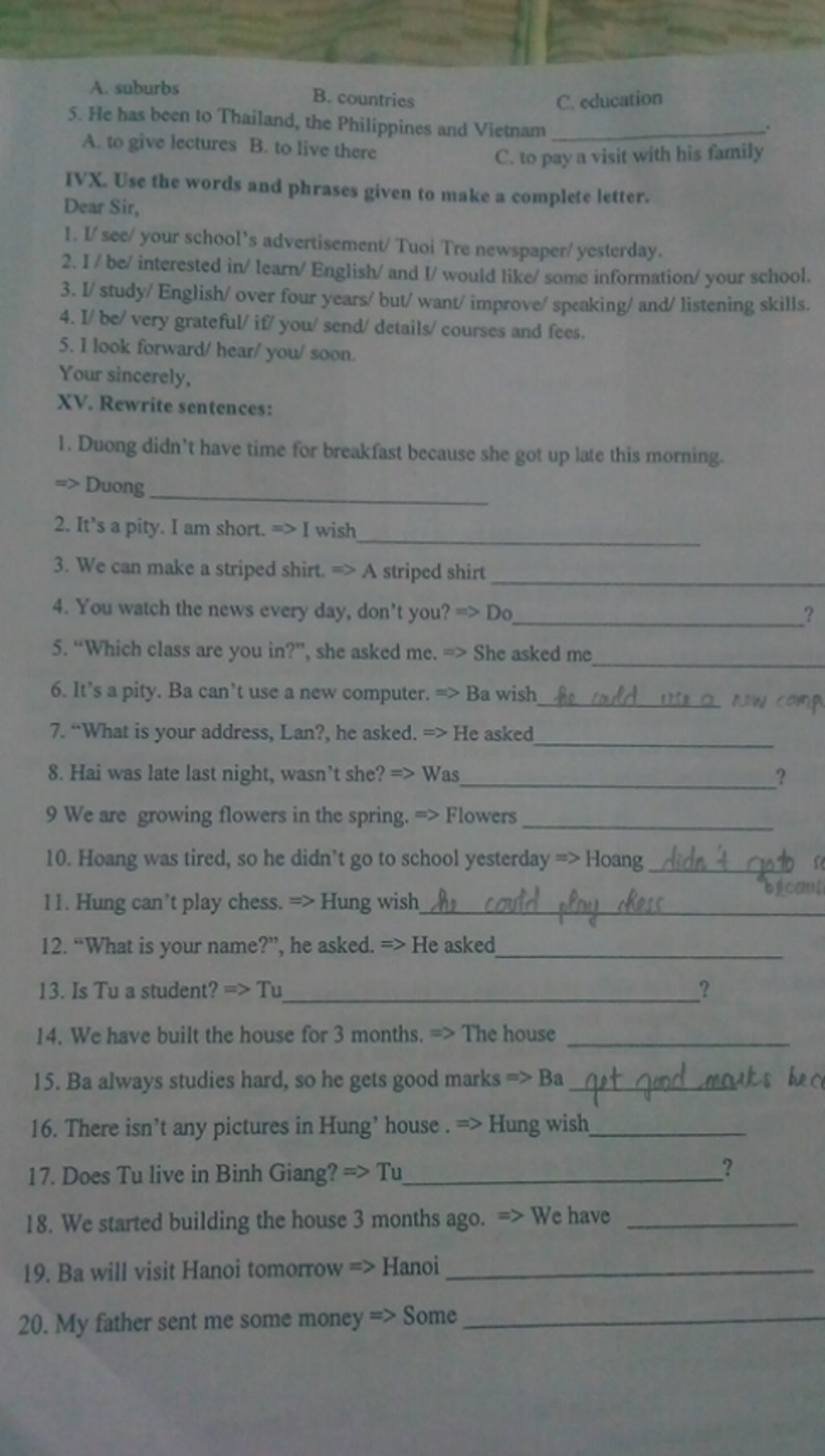 1. I saw your school's advertisement on Tuoi Tre newspaper yesterday.
