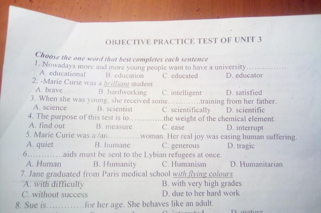 OBJECTIVE PRACTICE TEST OF UNIT 3