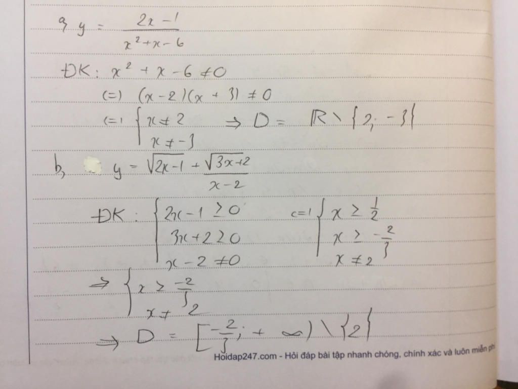 `b) y = sqrt{2x - 1} + (\sqrt{3x + 2})/(x - 2)`