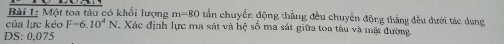 {F_{ms}} = \mu .m.g \Leftrightarrow \mu = \frac{{{{6.10}^4}}}{{{{80.10}^3}.10}} = 0,075