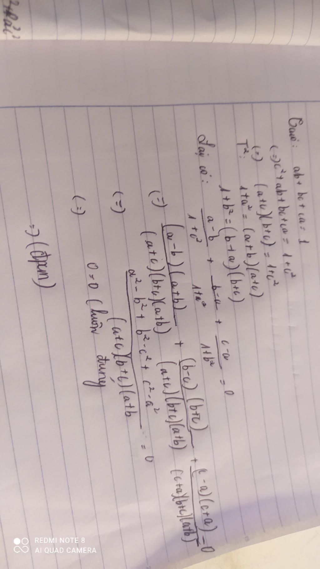\Rightarrow \dfrac{{a - b}}{{1 + {c^2}}} + \dfrac{{b - c}}{{1 + {a^2}}} + \dfrac{{c - a}}{{1 + {b^2}}}\\