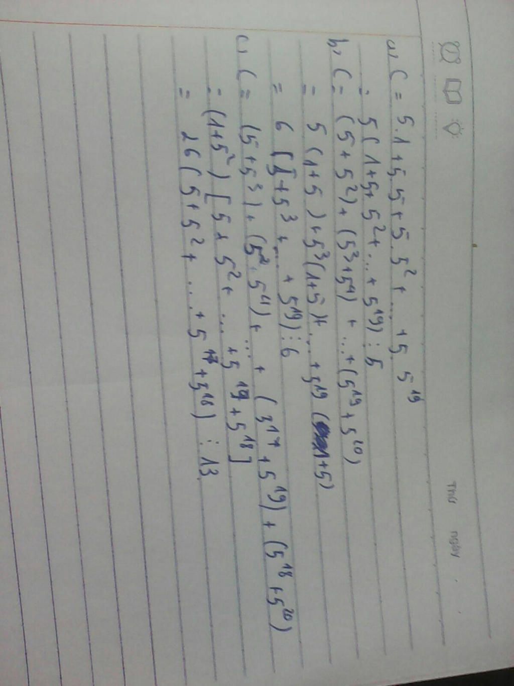 => C = 5 . ( 1 + 5 ) + 5^3 . ( 1 + 5 ) + ... + 5^19 . ( 1 + 5 )