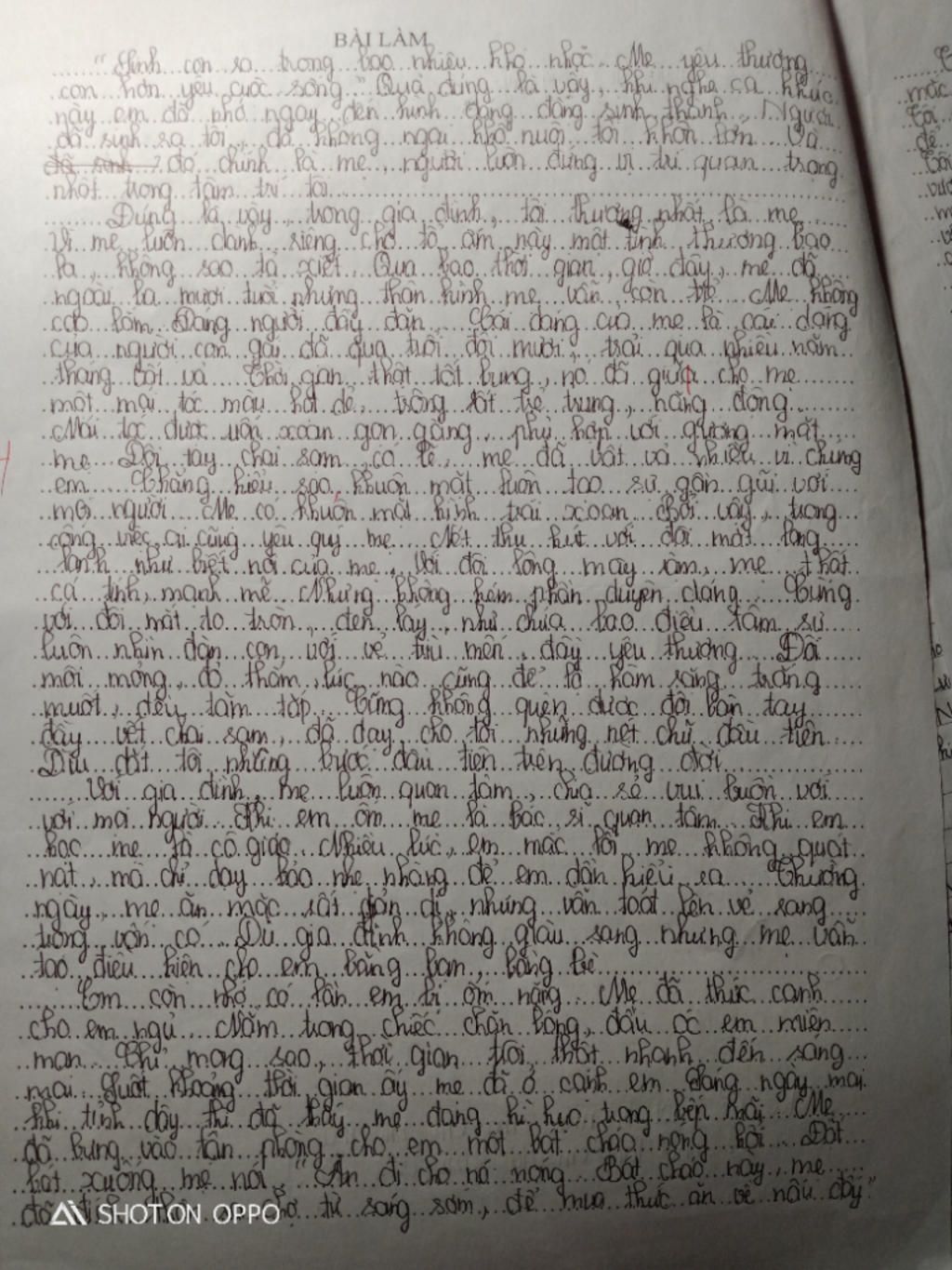 Trên thế giới này không ai có thể sánh bằng mẹ cả. Mẹ là người nuôi nấng chúng ta từ thuở bé cho đến khi trưởng thành. Vì vậy, bổn phận là con, ta hãy yêu thương mẹ thật nhiều, hãy luôn tôn thờ và kính trọng mẹ. Bản thân tôi luôn hứa rằng sẽ không bao giờ làm mẹ buồn, mẹ khóc và tôi sẽ phấn đấu học tập thật giỏi để xứng đáng là người con ngoan hiền của mẹ.