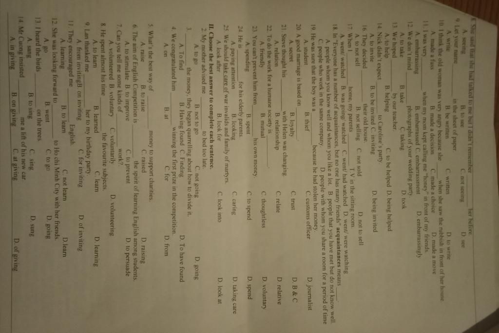 II. Choose the best answer to complete each sentence.