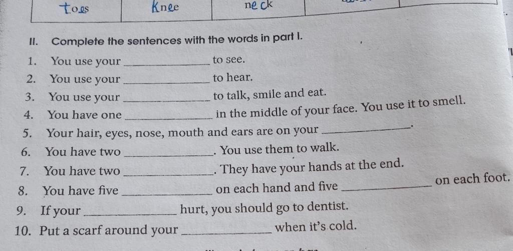 5. Your hair, eyes, nose, mouth and ears are in your face.