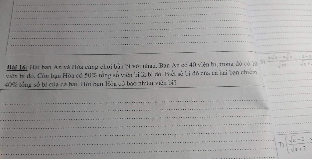 Vì số bi đỏ của cả hai bạn chiếm $\text{40%=0.4}$ tổng số bi của cả hai