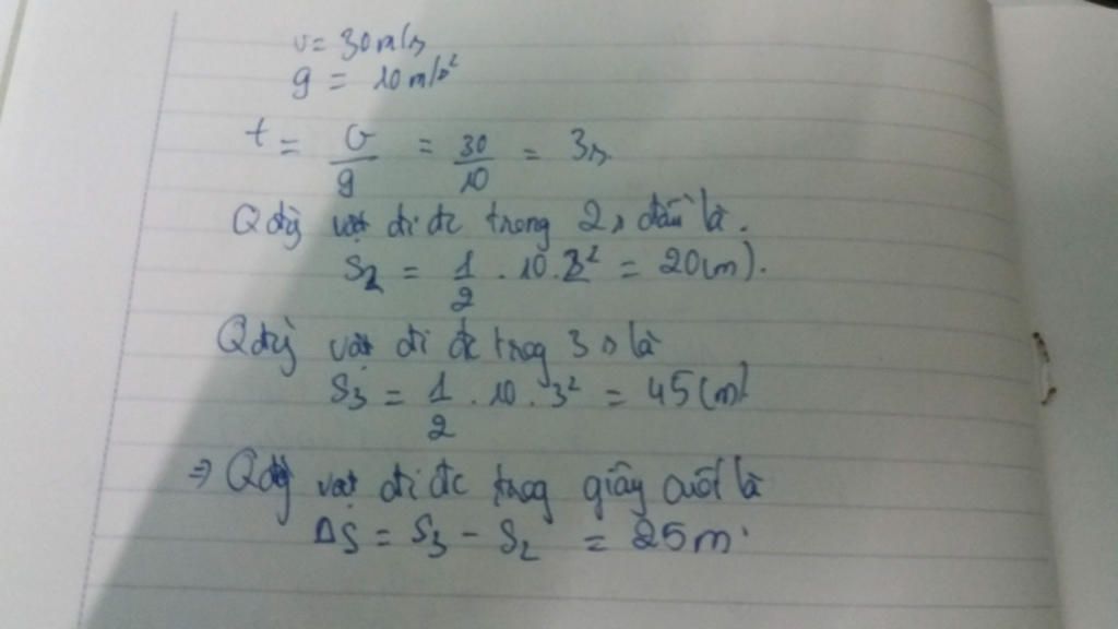 → `t=\frac{v}{g}=\frac{30}{10}=3 \ (s)`